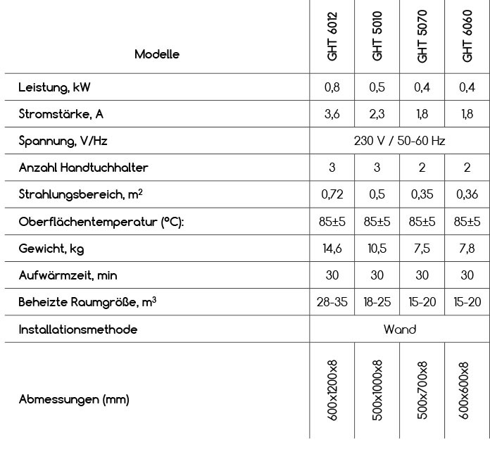Für Heizungen IGH 6012, IGH 6060 und beheizteHandtuchhalter GHT 6012, GHT 6060