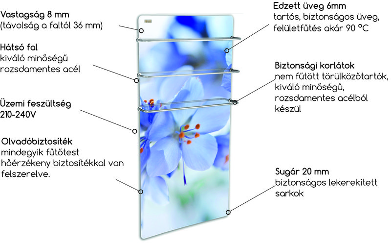 A természetes melegítés elve hangulatát és komfortérzést keltenek a fürdőszobájában a HGlass GHT üvegtörölközőszárítóink. A HGlaas GHT törölközőszárító használható önálló melegítő ként valamint törölközőszárító ként is. A törölközőtartók mennyisége a szárító típusától függ, de szakembereink által megtervezett fogantyúknak köszönhetően lehet bővíteni a tartók számat