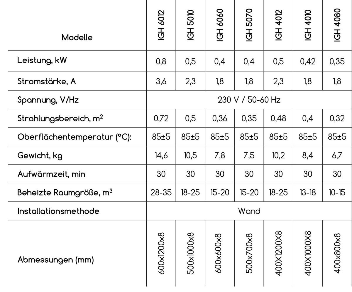 Das Heizelement besteht aus Material mit hoher Wärmeableitung bei geringem Energieverbrauch. Auch nach dem Trennen von der Stromversorgung erzeugt das Heizpaneel mehr als eine halbe Stunde lang Wärme. Es ist uns gelungen, die maximale Abkühlzeit des Panels zu erreichen. Dies hilft, die Energiekosten zu senken. Das stilvolle Panel-Design passt in jedes Interieur. Die Aufstellung unterscheidet sich sowohl in der Größe (siehe Technische Daten) als auch in der Farbe (Weiß, Schwarz, Spiegel).