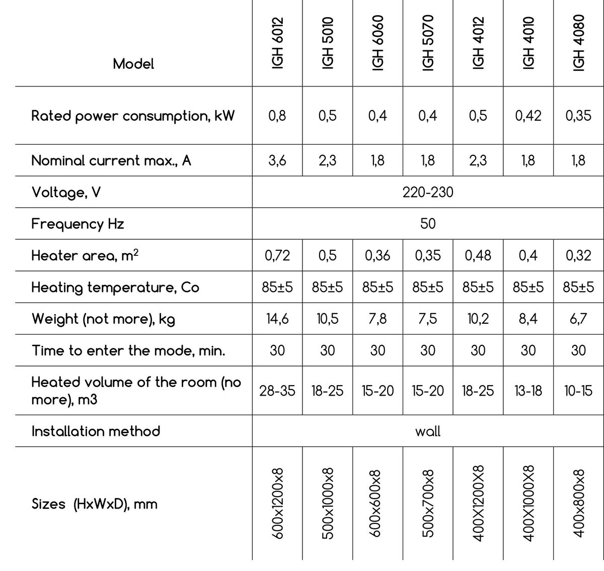 Todos los calentadores se pueden colocar tanto vertical como horizontalmente.