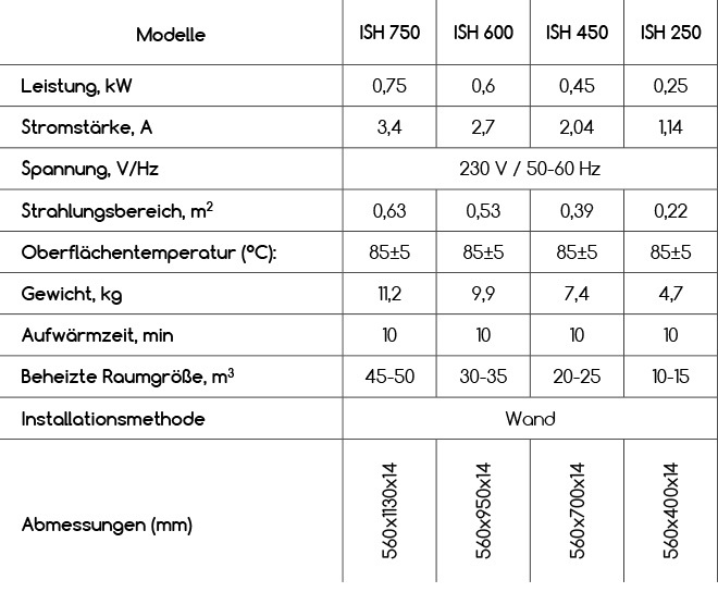 Heizfläche: 3-5 qm Leistung: 250 W.