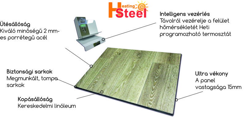 Autonóm elektromos infravörös fűtés HSteel fém melegítőkkel olyan rendszer melyikkel az alternatív fűtő rendszerekkel elemben elérhető 60% energia megtakarítás. A fém panelek egyesíti magában infravörös meleget az optimális spektrális jellemzőével, ami megteremti a kizárólagos meleg komfortot és az elhelyezési lehetőségeket a padlón/asztal alatt.